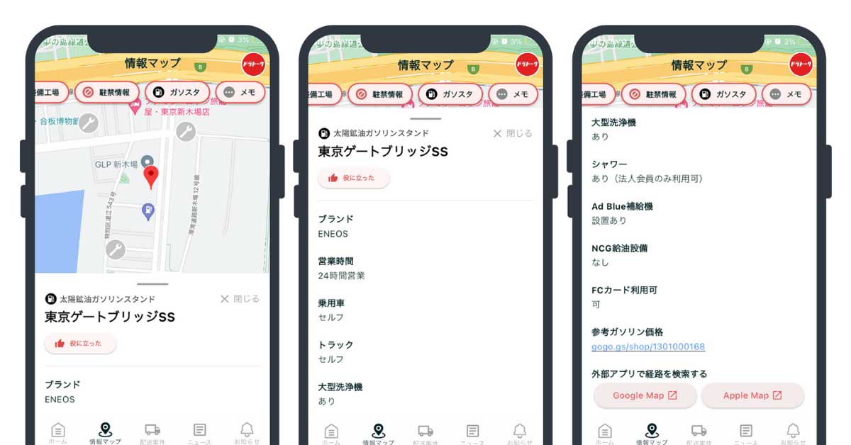 配送ドライバーのための情報プラットフォーム「ドラトーク」を提供するcanuu(カヌー、東京都中央区)は10月16日、太陽鉱油が運営する全国のガソリンスタンド全ての店舗情報の詳細情報を閲覧できる新機能を追加した。