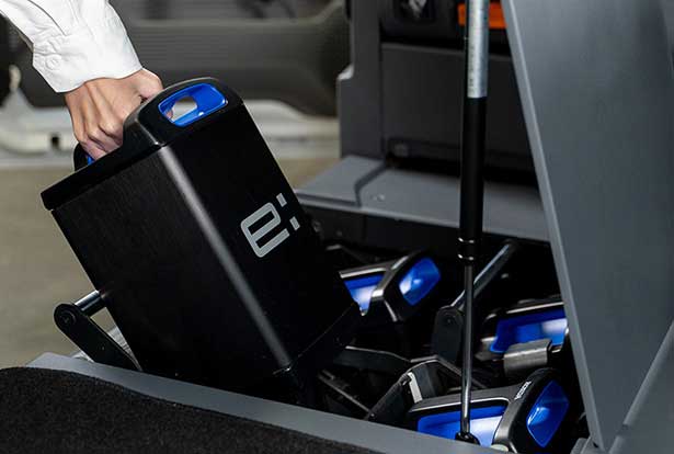 <実証で使用する交換式バッテリー「Mobile Power Pack e: 」。1個の重量は約10kg>
