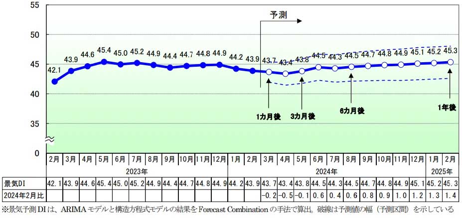 帝国データバンクが3月6日に発表した2024年2月の景気動向調査(全国)によると、国内景気は2ヶ月連続で悪化したものの、夏以降持ち直す見込みとしている。