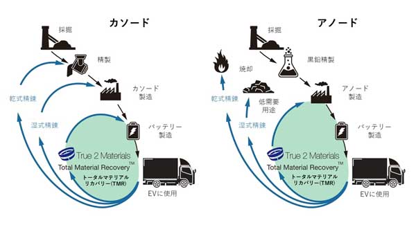 また、TMRはCO2の排出量をはじめ、分解処理による環境負荷を低減する。さらに、一般的にバッテリーのリサイクルプロセスにかかるコストの中で4分の3近くを占めるとされる金属処理についても、大幅にコストが低減できる見込みとしている。