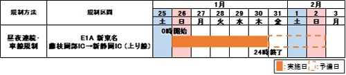 期間は2025年1月26日(日)0時~30日(木)24時まで。傷んだ橋梁上の舗装補修工事を実施する。