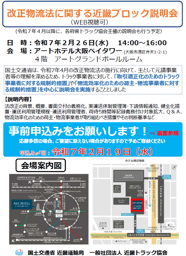 近畿運輸局/改正物流法に関する説明会を2月26日開催