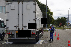 取締りでは計13台を引込み、このうち車両制限令違反の1台に措置命令を行った。また同時に、車両脱輪防止の啓発、「トラック・物流Gメン」によるトラックドライバーへの聞き取りを実施した。