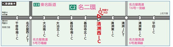 迂回路は国道302号など。清州東ICまたは名古屋高速・春日入口を利用する。