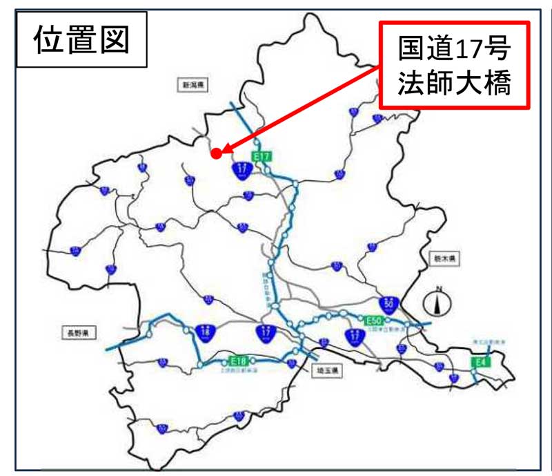 - 国道17号/法師大橋の橋桁損傷を確認、10月21日13時から終日片側交互通行規制 (10月21日)