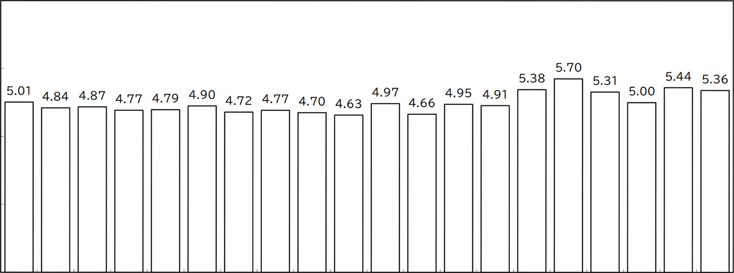 日本ロジスティクスシステム協会(JILS)は11月4日、「速報版:2025年度物流コスト調査報告書」を発表した。調査によると、2025年度調査(有効回答196社)における売上高物流コスト比率(全業種平均・速報値)は5.36%となり、過去20年間で4番目に高い水準を記録した。物流事業者からの値上げ要請などを背景に、長期的な上昇傾向が続いている。