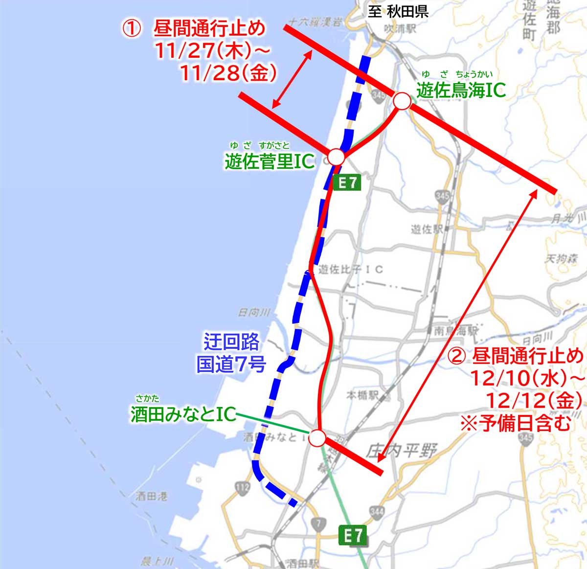 20251114sakata 1024x992 - 日東道/酒田みなとIC~遊佐鳥海ICを昼間通行止め、11月27日から