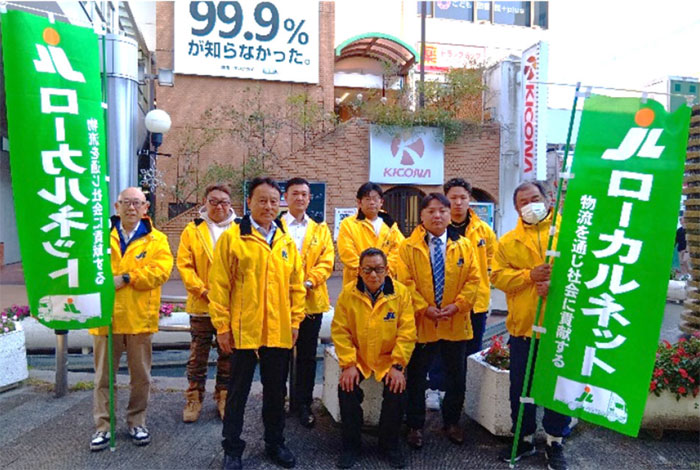 日本ローカルネットワークシステム協同組合連合会(JL連合会)近畿地域本部は11月8日、社会貢献活動の一環として、京阪電鉄・寝屋川市駅前で自転車の前かごカバーの配布と取り付け作業を実施した。