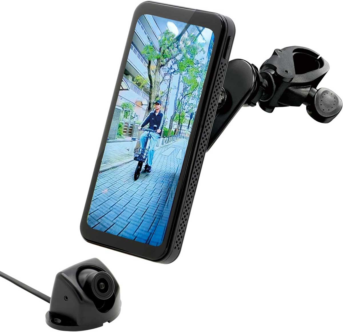 ピラーアシストグリップ(幅22~45mm)に取り付けるデジタルサイドミラーで、スマホサイズの6.25インチ縦型液晶(112万画素)高画質モニターを採用。色彩や路面の障害物をはっきりと確認でき、死角の状況を正確に把握できる。タッチパネルなので、カメラ位置の調整や画面の明るさをタッチするだけで変更できる。