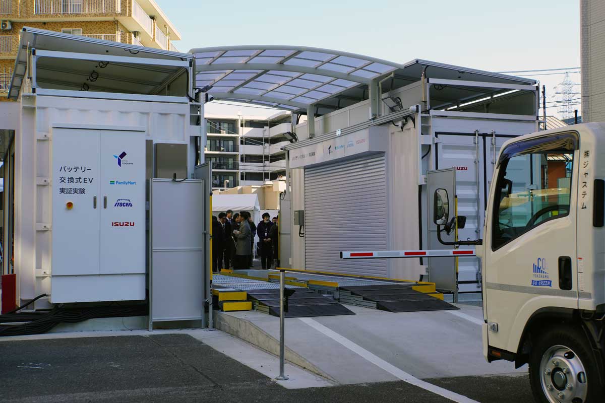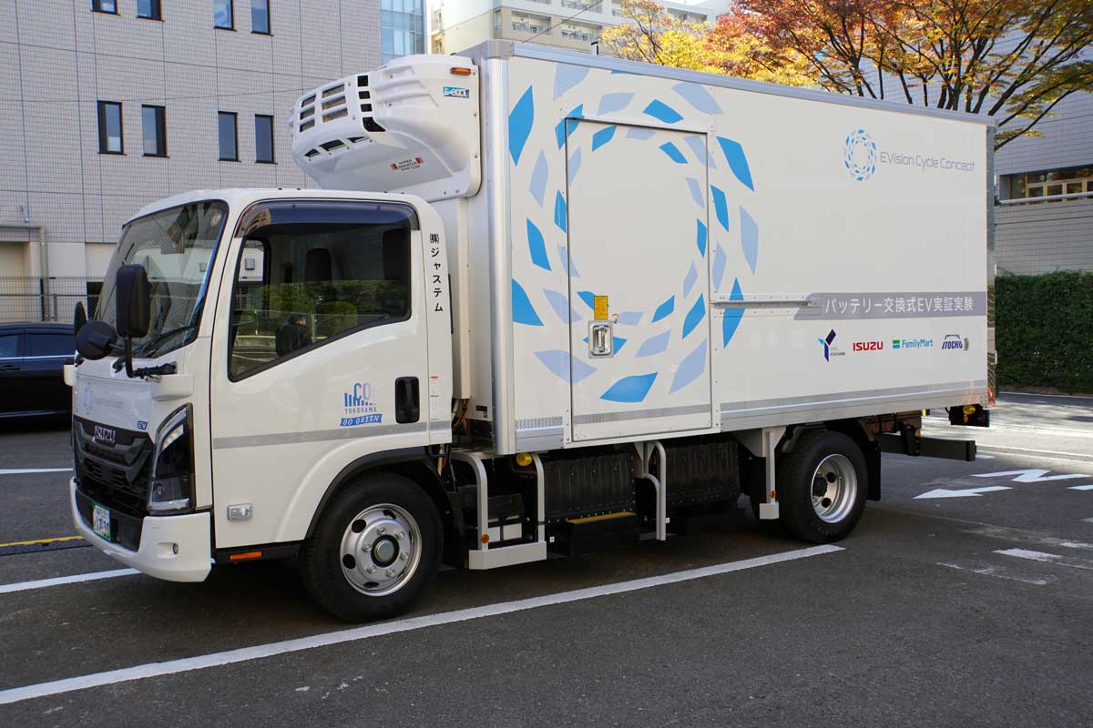 いすゞ/バッテリー交換式EV実証実験を横浜で開始、ファミリーマート店舗配送に使用
