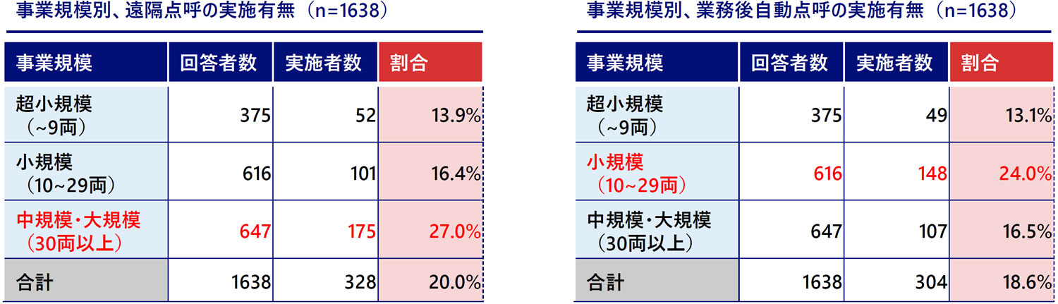 <事業者規模別の遠隔点呼や自動点呼の実施傾向>