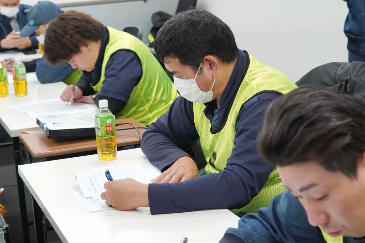 実技競技後には、いすゞ自動車首都圏の協力で、安全運転の基本と最新の知識を確認する安全講習座学を行い、ドライバーとしての安全意識を統一。また午後は、法令や事故防止の根幹となる知識を問う学科試験を実施し、技能だけでなく知識面からも安全作業の基礎力が総合的に評価された。