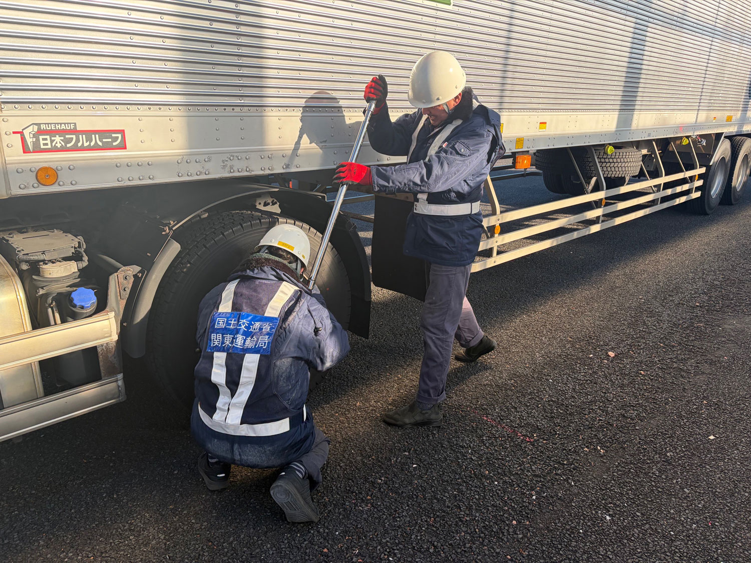 20251205niiza 1024x768 - 埼玉運輸支局/関越道新座料金所で大型車のホイール・ナット緩み点検、17台検査し1台に緩み