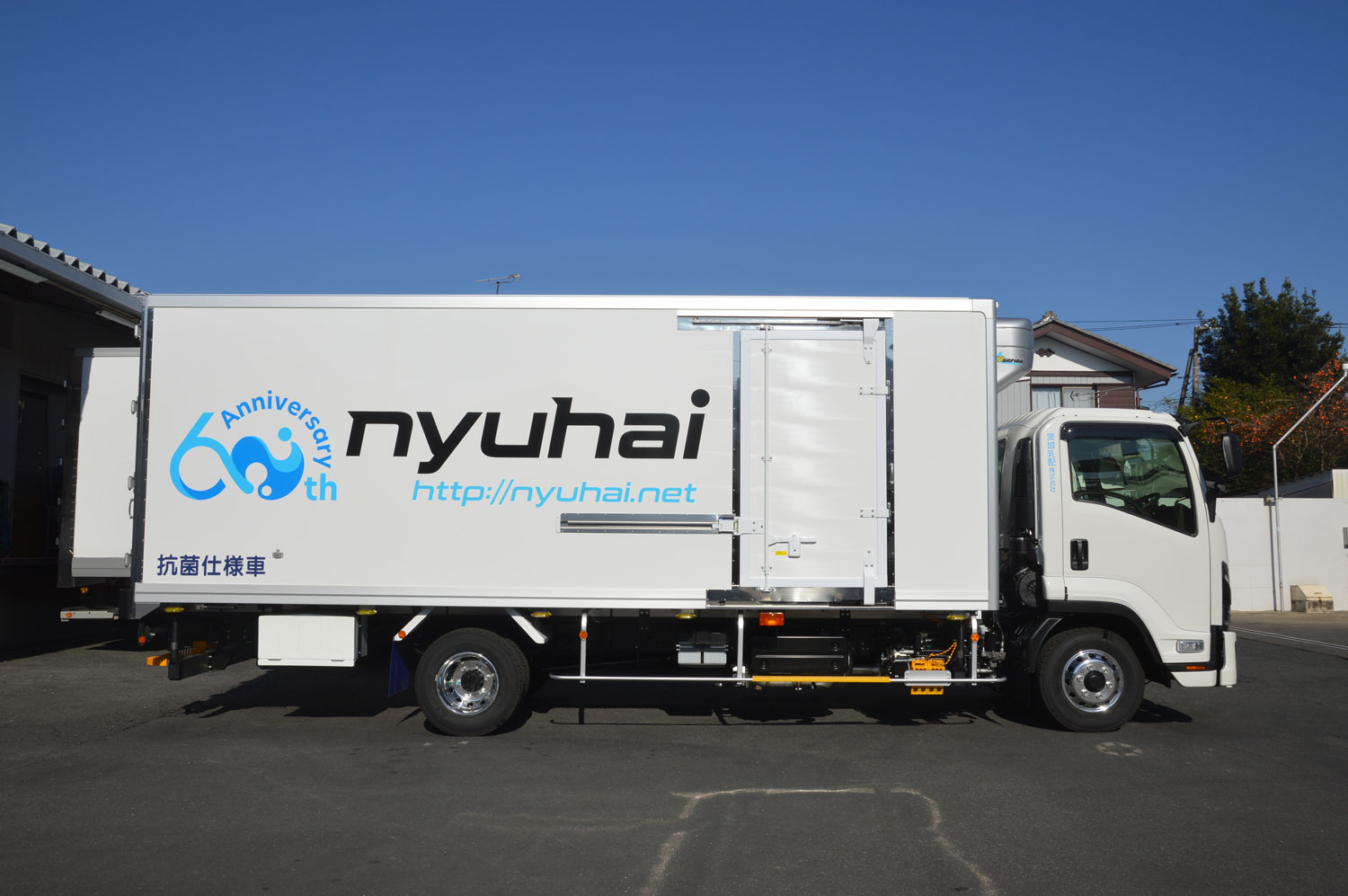 食品物流を手がける茨城乳配(本社:茨城県水戸市)はこのほど、2025年8月に創立60周年を迎えたことを記念し、特別デザインを施した60周年記念ロゴ入りの新車車両を3台導入した。