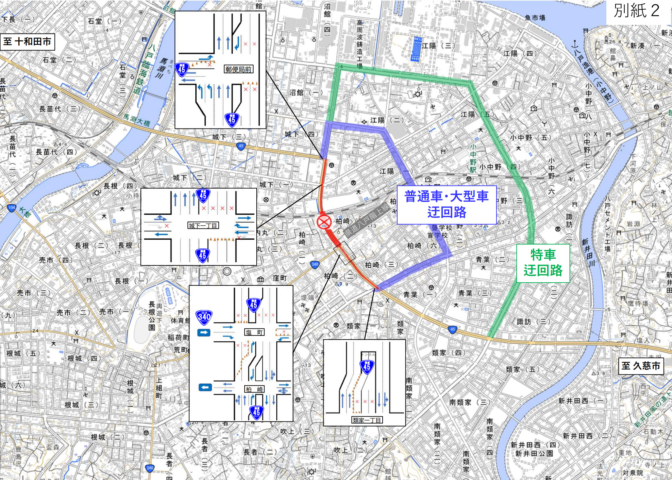 <国道45号の規制区間と迂回路>