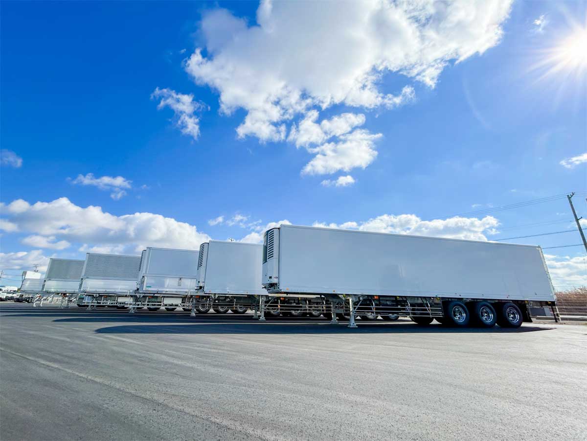 TQOは、短納期を実現するため規格品としたトレーラのラインアップ製品。今回の展示車は、実物を見て確認したいという顧客からの要望に応えたもので、ウイングセミトレーラ、バンセミトレーラ、平床セミトレーラアオリ付仕様、コンテナセミトレーラ、冷凍ウイングセミトレーラ、冷凍バンセミトレーラの6製品を実際に確認できる。