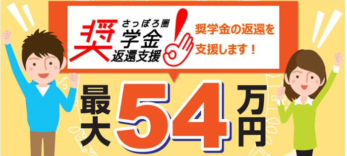 さっぽろ圏奨学金支援事業は、学生時代に貸与型奨学金を利用した方が、札幌市から認定を受けた企業等へ就職し、札幌市・小樽市・岩見沢市など12市町村のさっぽろ圏内に居住した場合、就職後2年目~4年目に年間最大18万円を3年間(最大54万円)支援する制度。