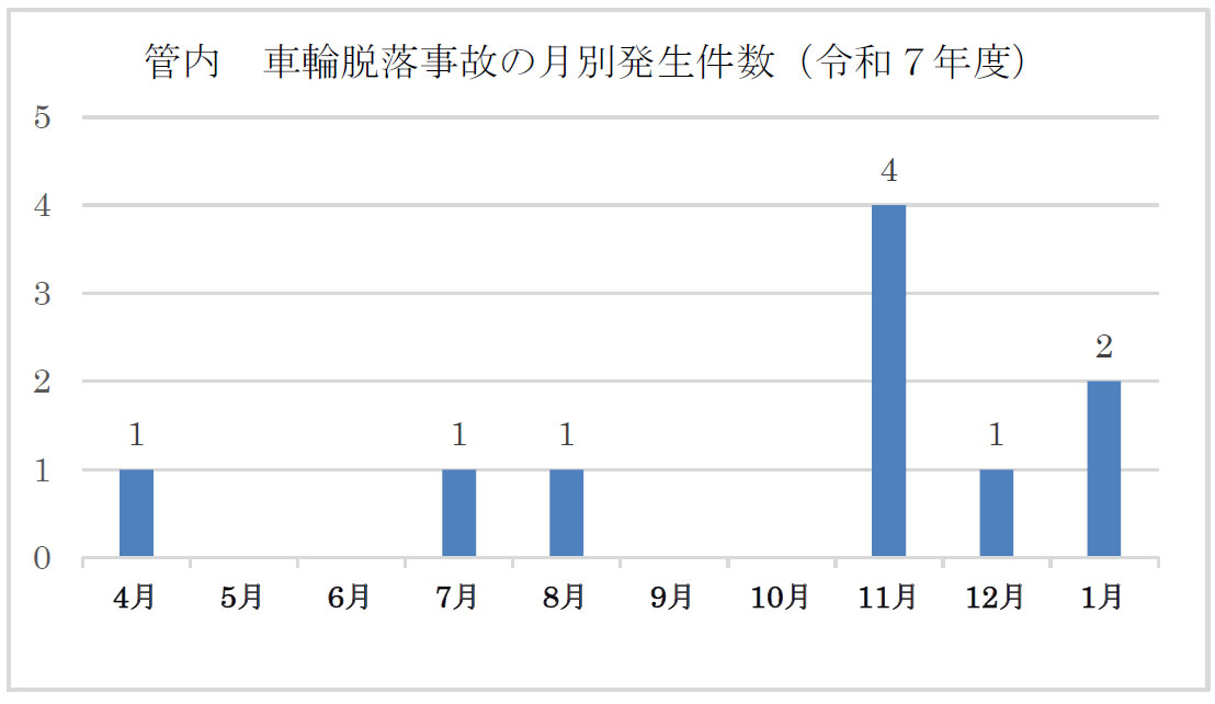 北陸信越運輸局は1月28日、管内で1月13日までに発生した大型車の車輪脱落事故件数を発表した。2025年11月に4件、12月に1件、2026年1月に2件、合計7件の車輪脱落事故が発生した。