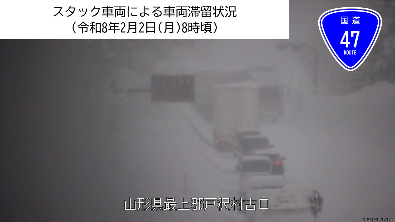 - 国道47号/最上郡戸沢村古口~東田川郡庄内町清川「スタック車両」発生で通行止め(2日10時25分) (02月02日)