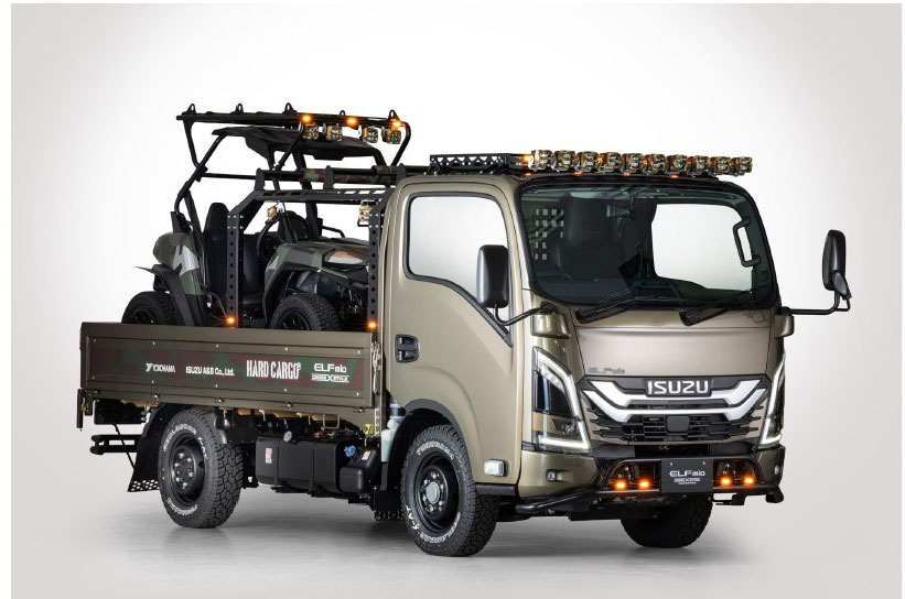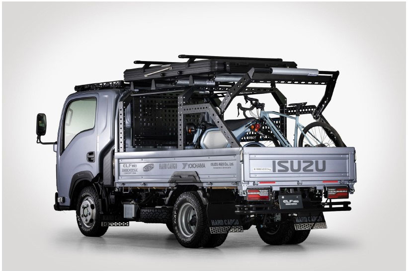 出展テーマは「ELF CUSTOMIZE Lab.(エルフカスタマイズラボ)-走りだせ、冒険仕様-」。普通免許で運転できる「エルフミオ スペースキャブ平ボディ」に、参考出品パーツを装着した「CROSS STYLE ACCESSORIES」コンセプトモデル「ELFmio CROSS STYLE CONCEPT」と、「エルフミオ シングルキャブ平ボディ」に純正アクセサリーを装着したクロスオーバー仕様の「ELFmio CROSS SYTLE ACCESSORIES」を展示する。