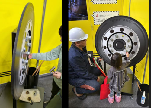 メインテーマである「脱輪防止啓発」では、大型車のホイール・ナットの緩みを工具で確かめる体験が常に行列となり、多くの人々が啓発動画を視聴した。「タイヤが外れると危ないんだよ」と子供に伝える親子さんも見られ、「大変勉強になった」「一番楽しかった」との声もあり、啓発の意図がしっかりと伝わっていることを実感したという。