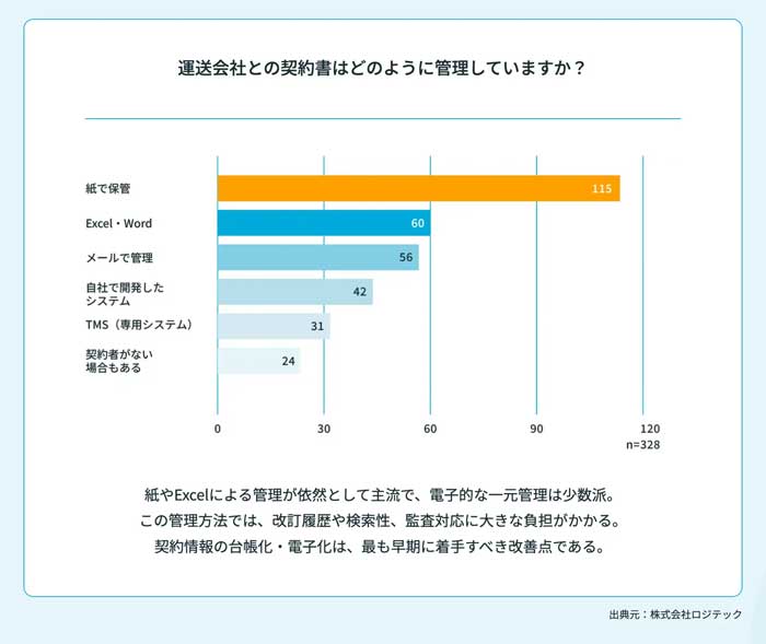 しかし、現在の多くの現場では「電話で配車、紙やExcelへ入力して管理」というアナログ手法が主流。電話では、実際に誰が(何次請けが)運んでいるかを把握できず、法が求める管理簿の作成は難しい事に加え、案件ごとに異なる下請け構造や契約条件を、書面交付、管理する人材リソースを割けないという課題がある。