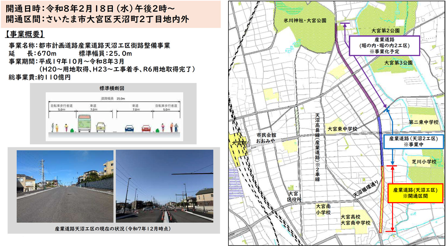 埼玉県/産業道路・大宮区大原6丁目~大宮区天沼町2丁目、2月18日14時開通