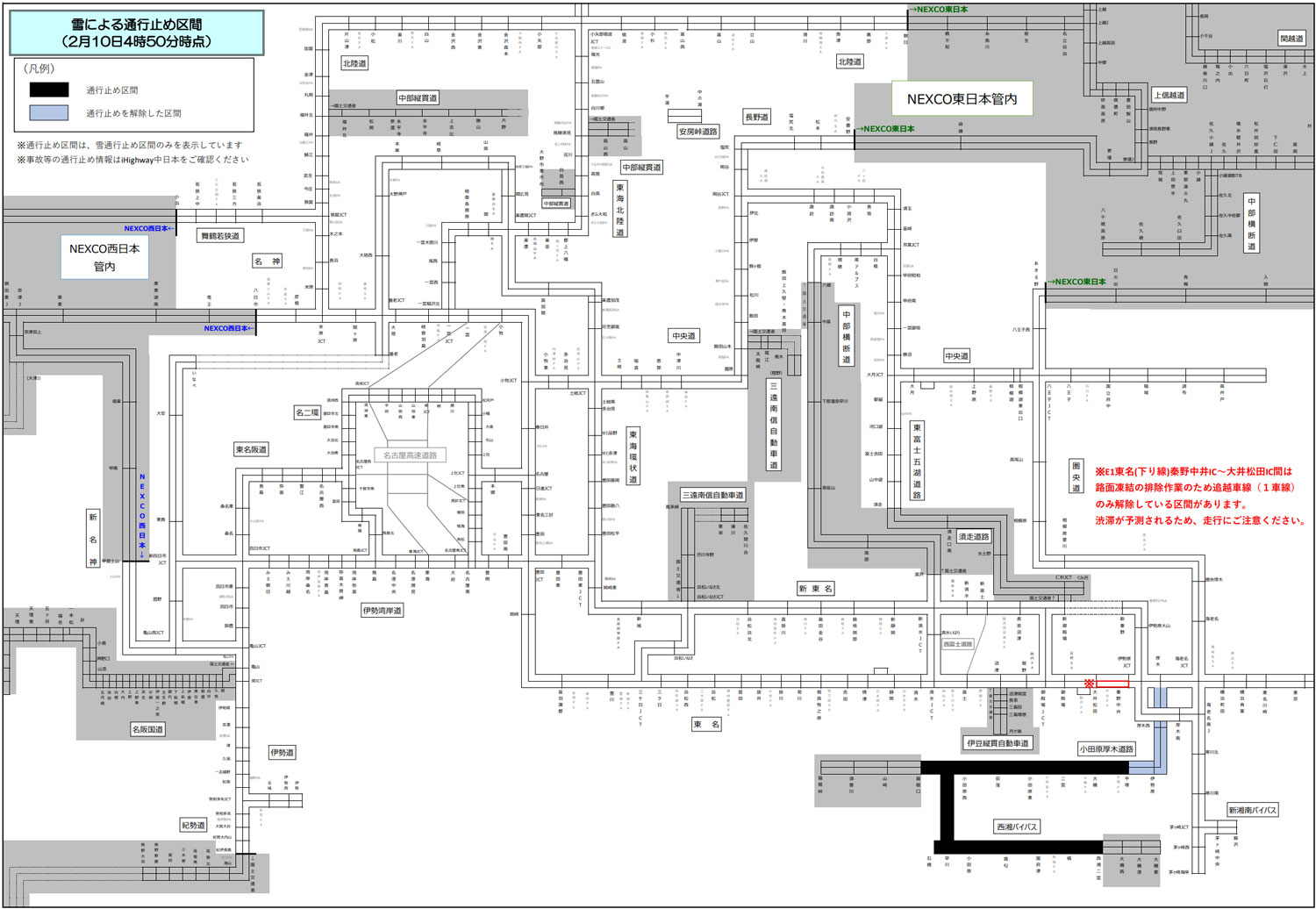 - NEXCO中日本/東名、新東名など広範囲で通行止め続く(9日6時25分現在) (02月09日)
