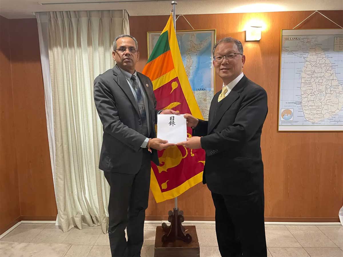 <(左から)駐日スリランカ特命全権大使 ピヴィトゥル・ジャナック・クマーラシンハ氏、荒井商事 荒井亮三社長>