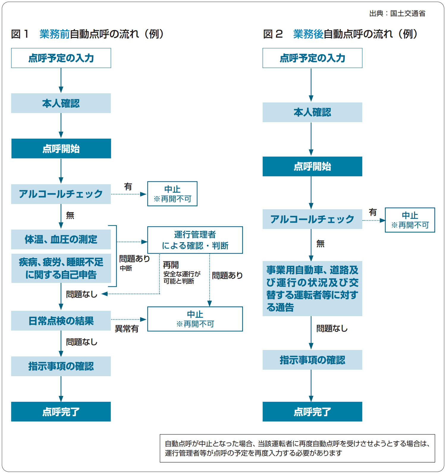 運行管理者は、業務前点呼を実施し、運転者から本人の健康状態や酒気帯びの有無、日常点検等の報告を求め、それに対して安全を確保するために必要な指示をしなければならない。
