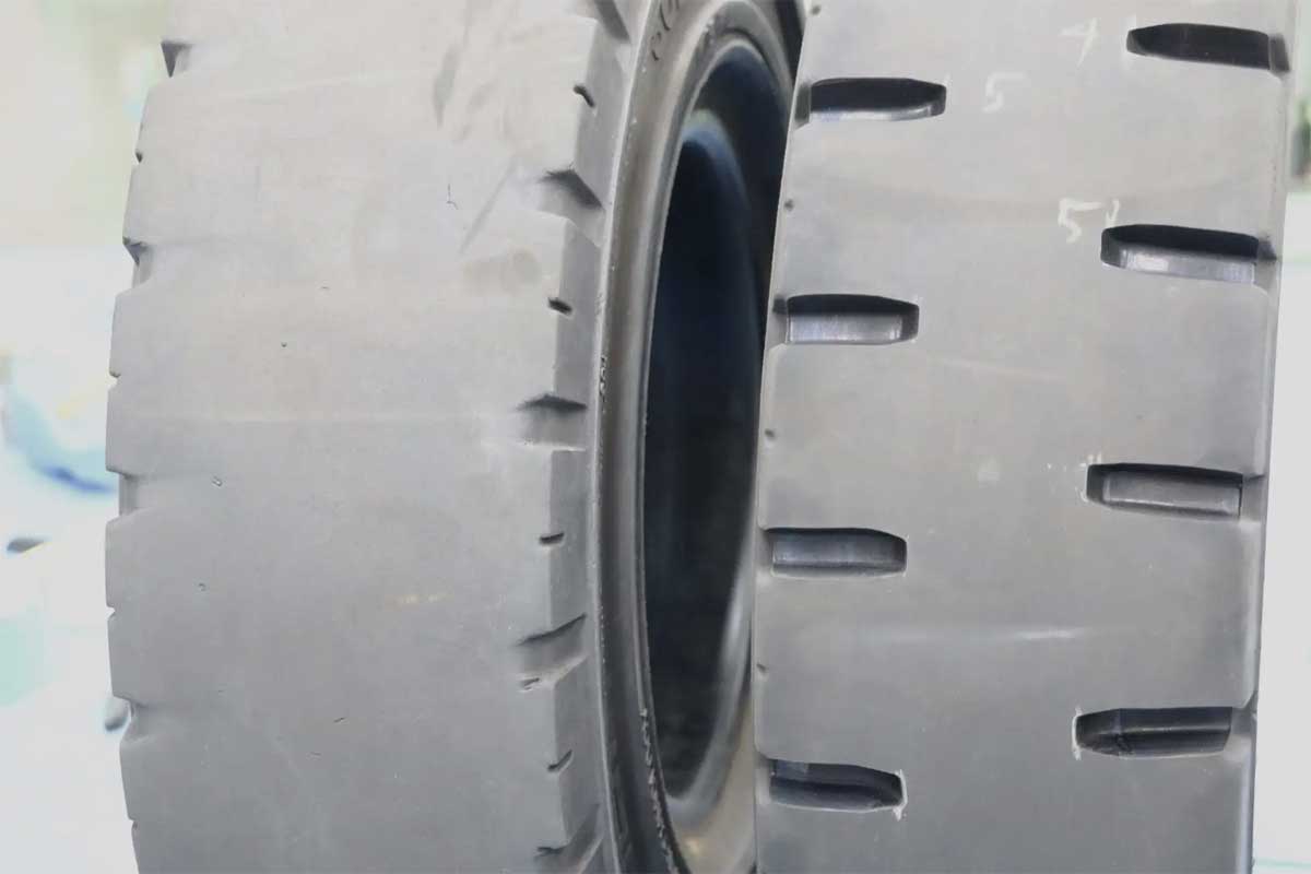 日本ミシュランタイヤは、フォークリフト向けソリッドタイヤ「Solideal」のリグルーブによる寿命延長を推進する。
