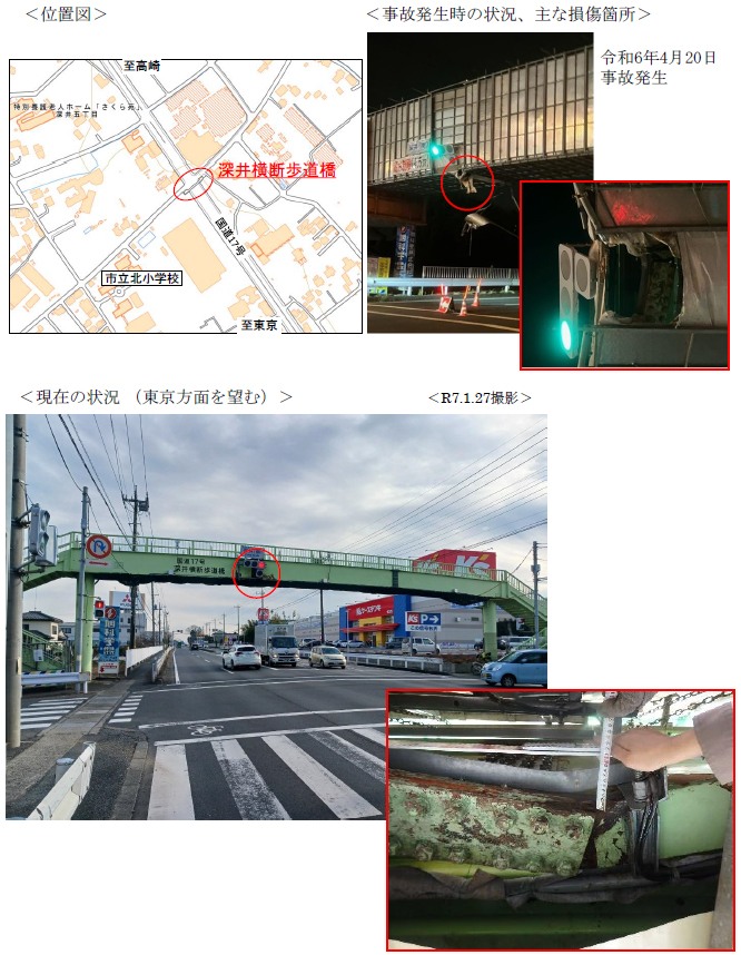 通行止め期間中は、県道164号(旧中山道)等で迂回する。なお、補修工事は法令に基づき交通事故を起こした原因者が行う。