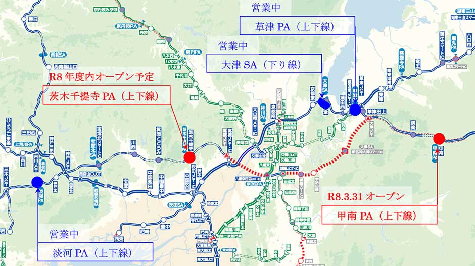 この他、新名神では茨木千提寺PA(上下線)にも、シャワーステーションを設置を予定。2026年度内のオープンを見込んでいる。