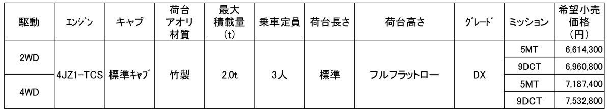 一方、「アトラス」2WDの2トンクラスは、法規適合に加えて、市場のニーズに対応するため展開車型を拡大した。