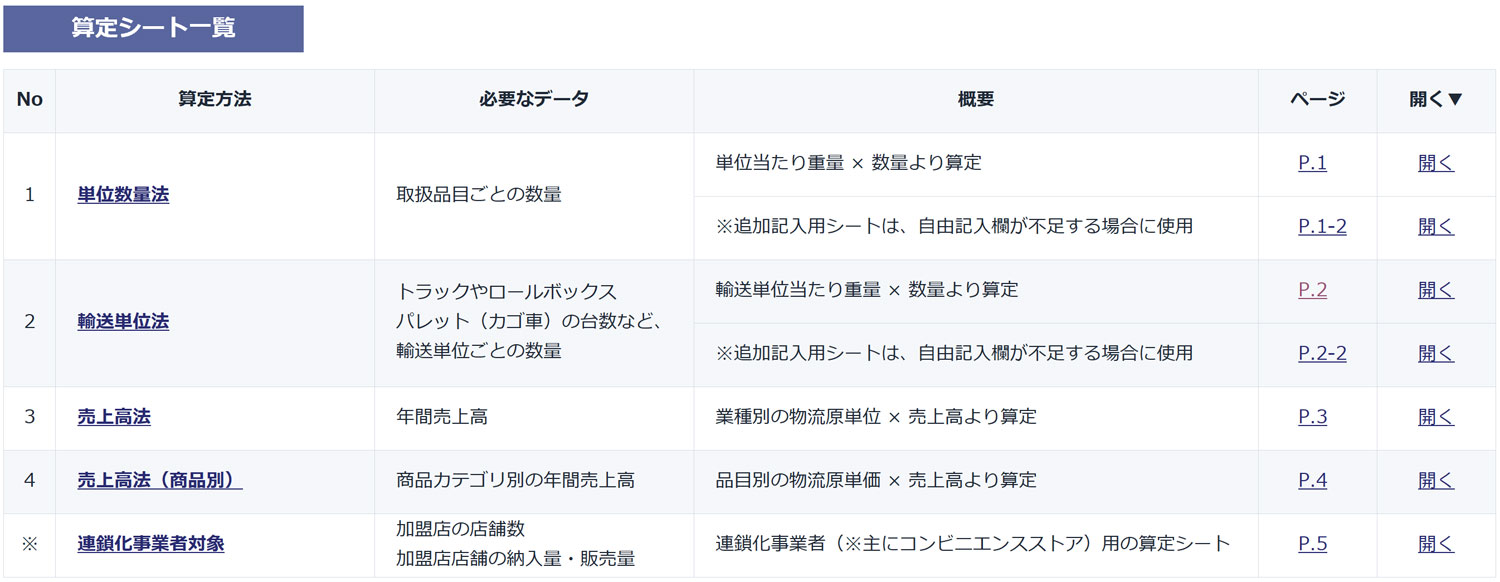 出典:貨物重量算定フォーマット(小売業向け)
