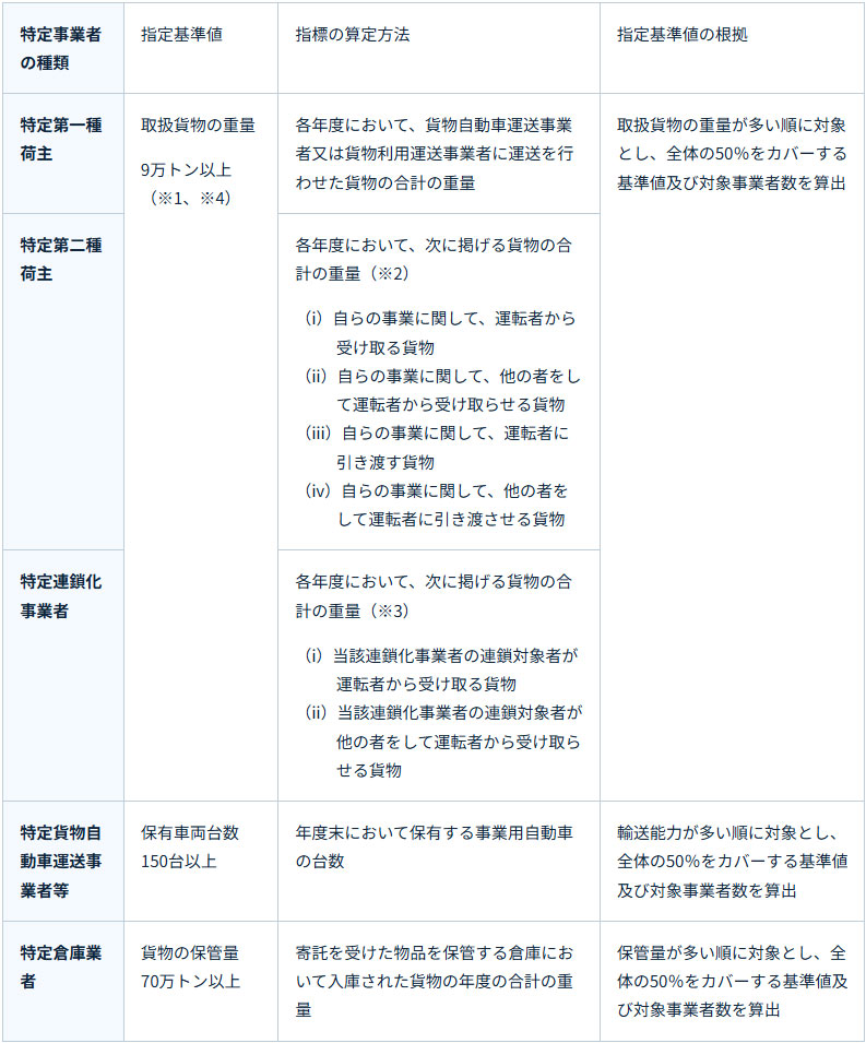 荷主については、事業者として全体ではなく、第一種荷主、第二種荷主それぞれの立場での取扱貨物重量に分けて特定荷主の指定基準値(9万トン)に該当するかどうかを判断することになる。