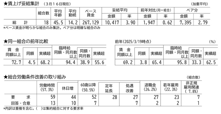 - 26春闘/交通労連、加重平均3.9%、7割近い組合で前年実績上回る (03月18日)