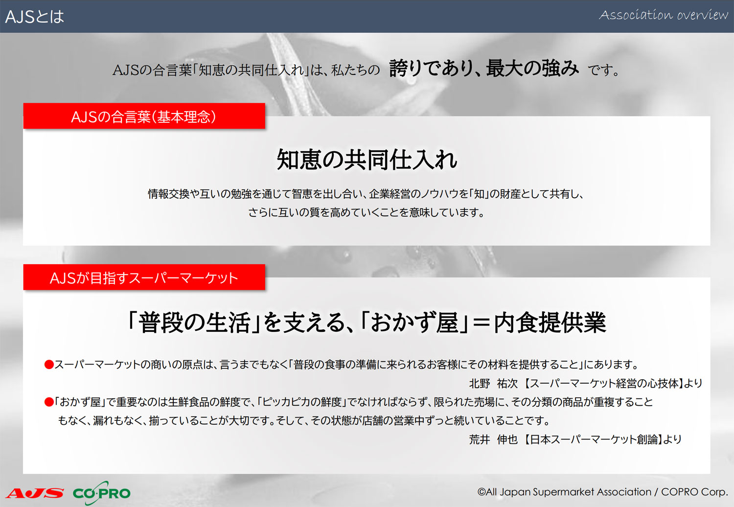 日本スーパーマーケット協会は、会員企業が中心的な役割を担っている「SM物流研究会」や協会内に設置している「物流システム委員会」で、経済産業省、農林水産省、国土交通省などとの意見交換や会員向けの法制度の説明会などを開催している。