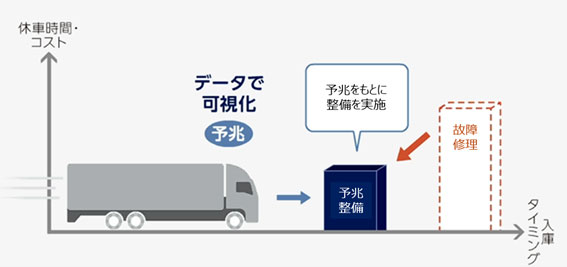 <予兆をもとに整備を行うことで故障を抑制し、休車時間・コストを削減する>